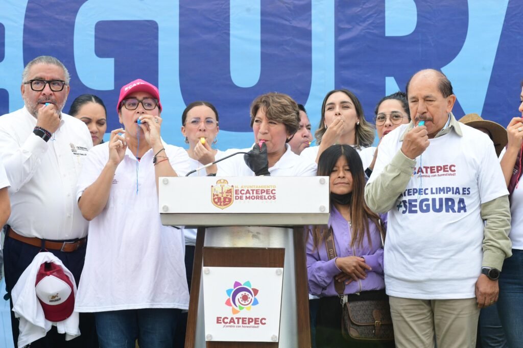 Con guantes, costales y escoba en mano, la Gobernadora Delfina Gómez Álvarez y la Alcaldesa Azucena Cisneros realizaron la jornada “Ecatepec Limpia es más Segura”, rodeadas de familias, adultos mayores y niñas y niños que mostraron entusiasmo por recuperar sus espacios públicos.