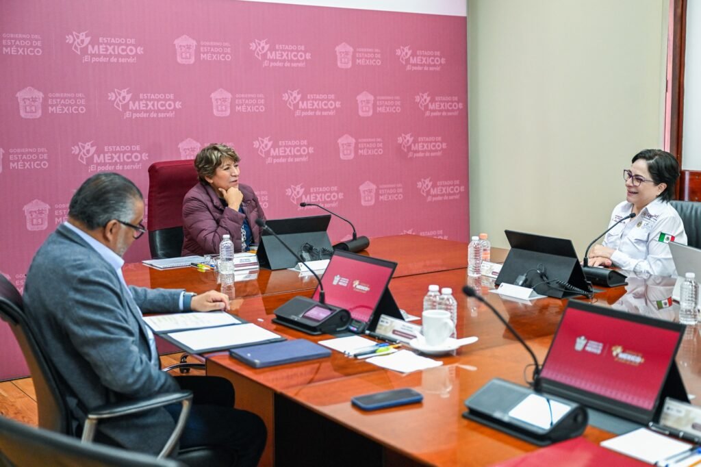 TOLUCA, Estado de México. – A fin coordinar acciones que permitan protege la integridad física de las personas, reducir la pérdida de vidas y bienes, así como minimiza el daño a la naturaleza ante desastres naturales o humanos, la Gobernadora del Estado de México, Delfina Gómez Álvarez se reunión con Laura Velázquez Alzúa, Coordinadora Nacional de Protección Civil (CNPC).