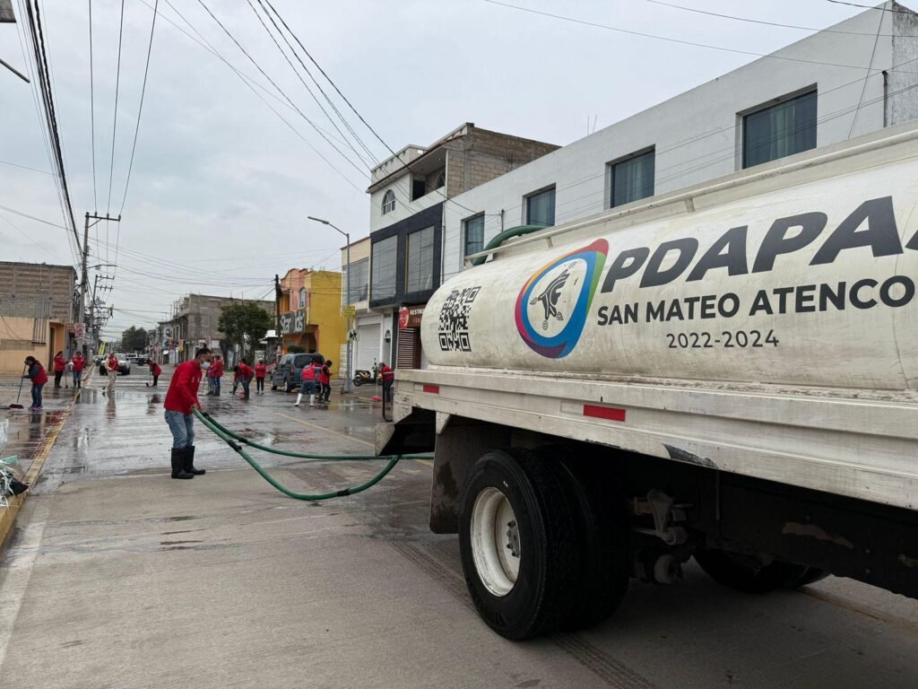 El Gobierno Municipal de San Mateo Atenco informa que las acciones en este rubro continúan: sumado al nuevo canal de alivio recientemente puesto en operación, en próximos días se estarán realizando trabajos de mejora de la infraestructura en la Av. Juárez, de la calle Pensador mexicano a la de Galeana, a fin de reforzar la conducción del agua pluvial y fluvial que este municipio recibe de Zinacantepec, Toluca y Metepec.