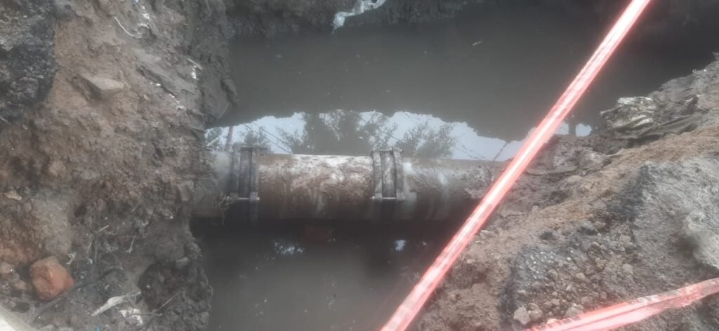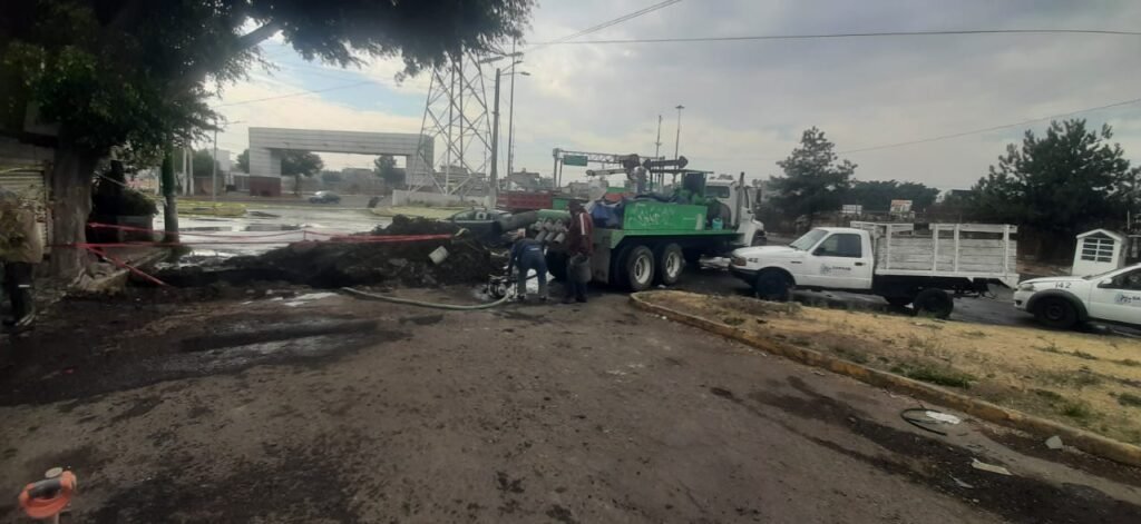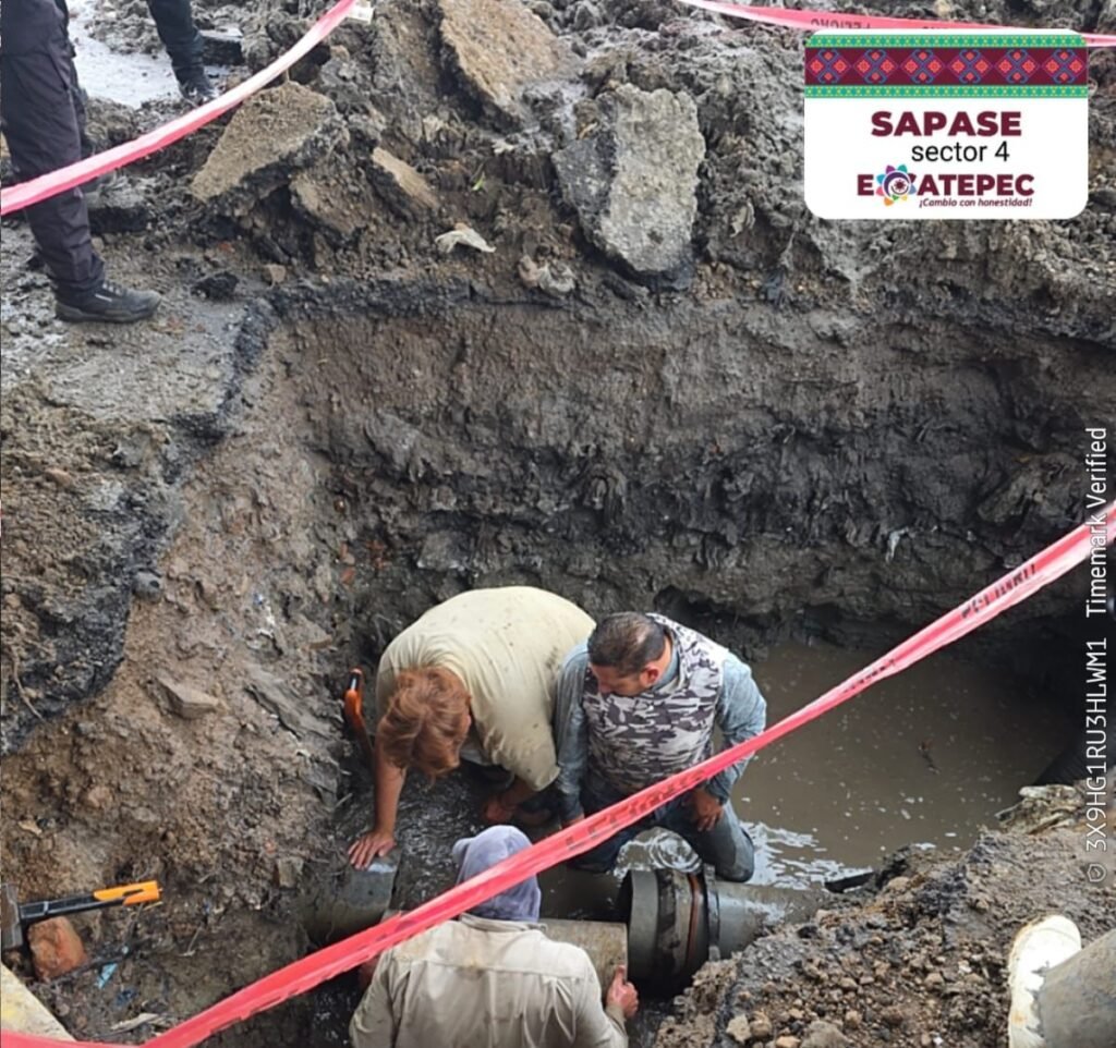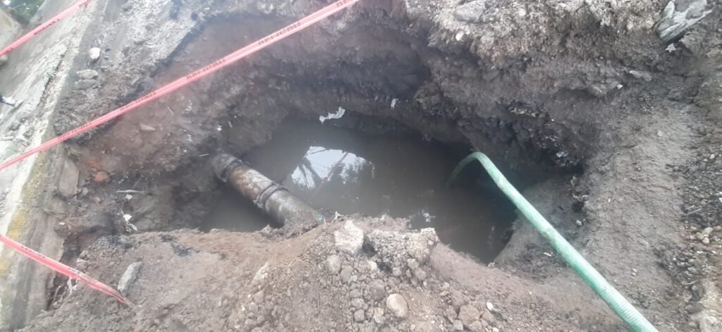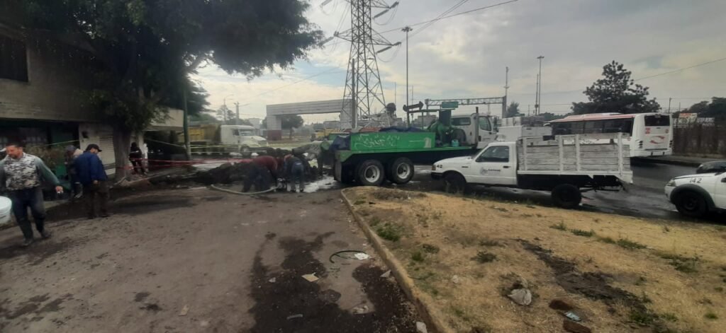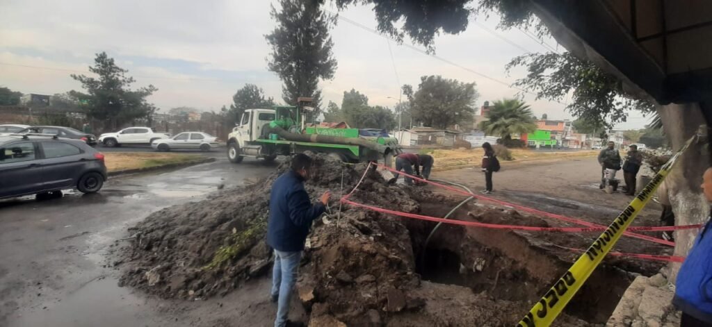 “Alrededor de las 7:00 horas recibimos el reporte que se había presentado una fuga de agua en este lugar, de inmediato solicitamos al personal que lo atendiera, fue en una tubería de 12 pulgadas que suministra agua a esta zona”, explicó.