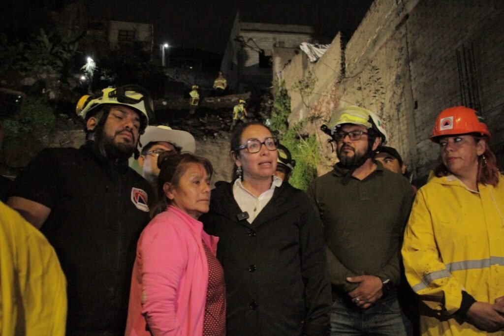 “Fue una barda en una ladera, por necesidad vecinos se asentaron en zonas de riesgo, afortunadamente no hubo vidas que lamentar, se terminó de tirar las piedras, van a continuar las brigadas para limpiar en este predio y otras calles afectadas, estamos al pendiente de los vecinos”, precisó la alcaldesa.