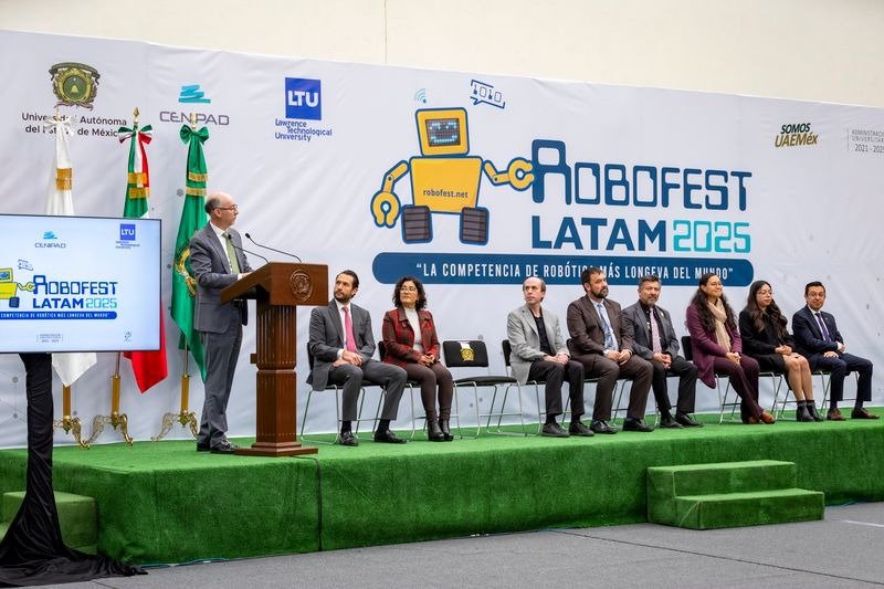 La Universidad Autónoma del Estado de México (UAEMéx) se convirtió en sede del Robofest LATAM 2025, un evento internacional que busca inspirar y fomentar las vocaciones científicas y tecnológicas entre las nuevas generaciones. En el gimnasio “Adolfo López Mateos”, el rector de la institución, Carlos Eduardo Barrera Díaz, destacó la importancia de este encuentro para promover el aprendizaje técnico, así como el desarrollo de habilidades creativas en los jóvenes participantes.